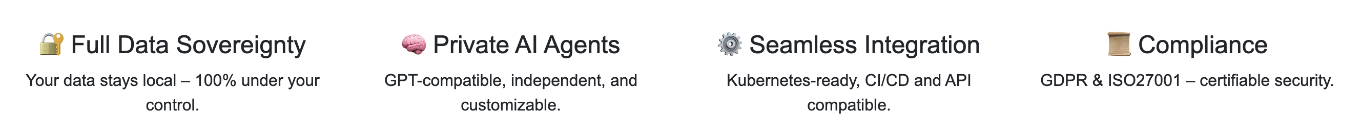 AI On-Prem enables enterprises to overcome these weaknesses while still accessing state-of-the-art AI technologies – directly on site. Whether in your own data center, on edge devices, or through private cloud environments orchestrated via Kubernetes, it offers a strategic advantage.